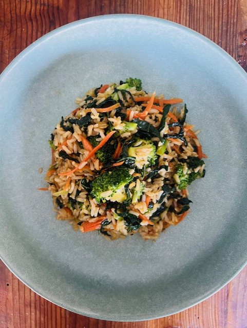 Brown Rice Sauteed with Kale Carrots & Scallions